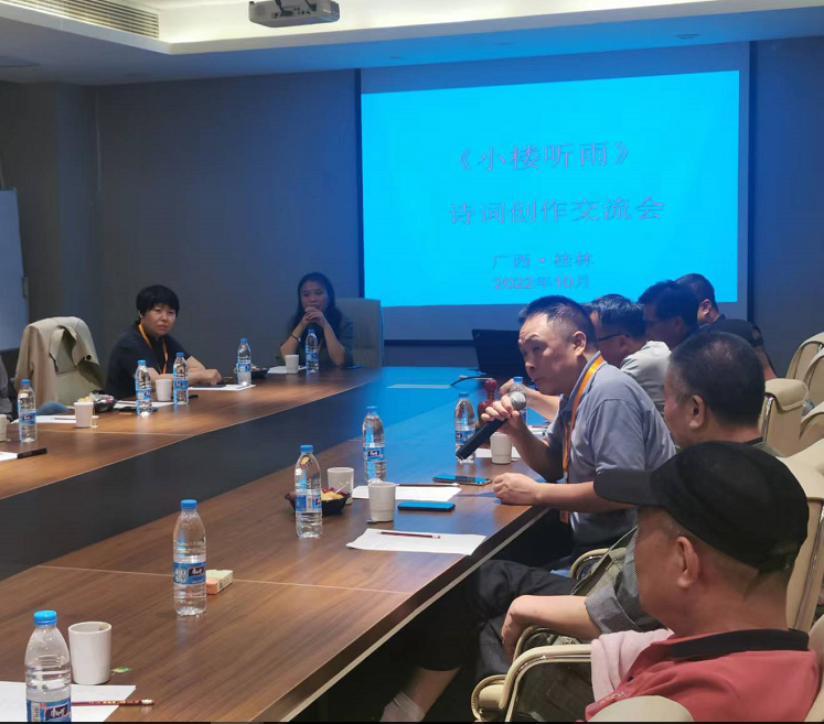 杨逸明先生针对目前诗词创作中的问题做了精彩的创作辅导,指出诗要用口语的书面语来表达,雅不避俗,俗不伤雅。初学者既要文言文基础还要临帖……。楼立剑先生和张庆辉先生也即兴发表了看法,楼立剑先生认为诗词可分为作品、作业、商品……。张庆辉先生认为写诗先文从字顺,然后要贴切准确。拓展题材学会“无中生有”法…随后他们三位回答了各位诗友的问题,现场点评了诗友的部分作品…宋善岭先生作了精彩的总结。会后诗友纷纷表示,来桂林收获特大,并希望小楼多多组织此类活动。