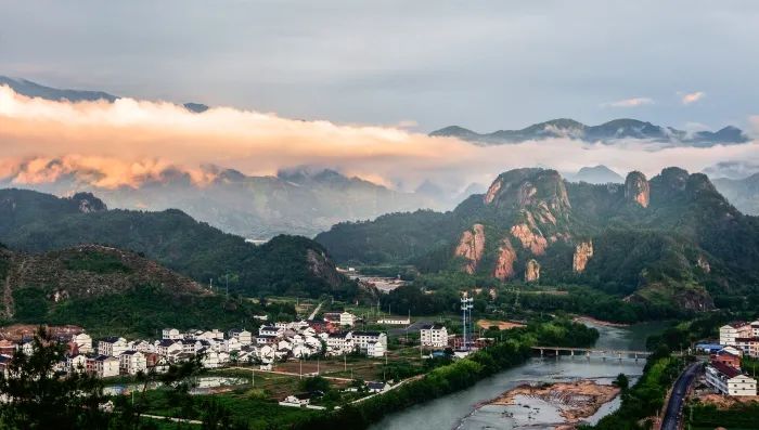 晴峦千叠,清风几缕,重临又是忘还。莎草半堤,栀香一涧,黄昏踏过沙湾。高架碧天间。喜眉月初上,星夜未阑。举火溪渔,笑歌依约到前滩。 青萝翠竹珊珊。旧祠连老宅,荷影轻寒。奎阁俨然,牌坊古朴,文风岂易消残。盘谷有奇观。御史冰心在,长警尘寰。博士遗踪寻觅,东岸久盘桓。