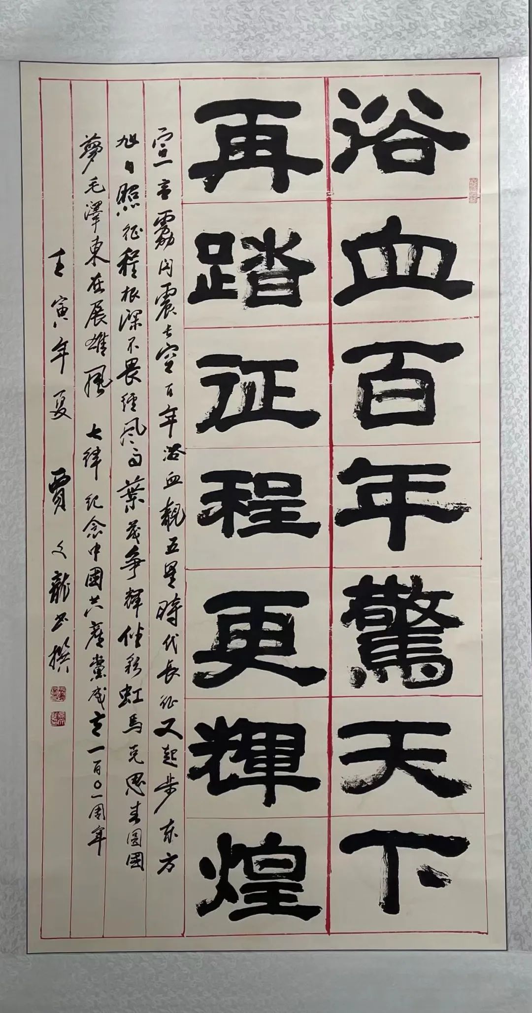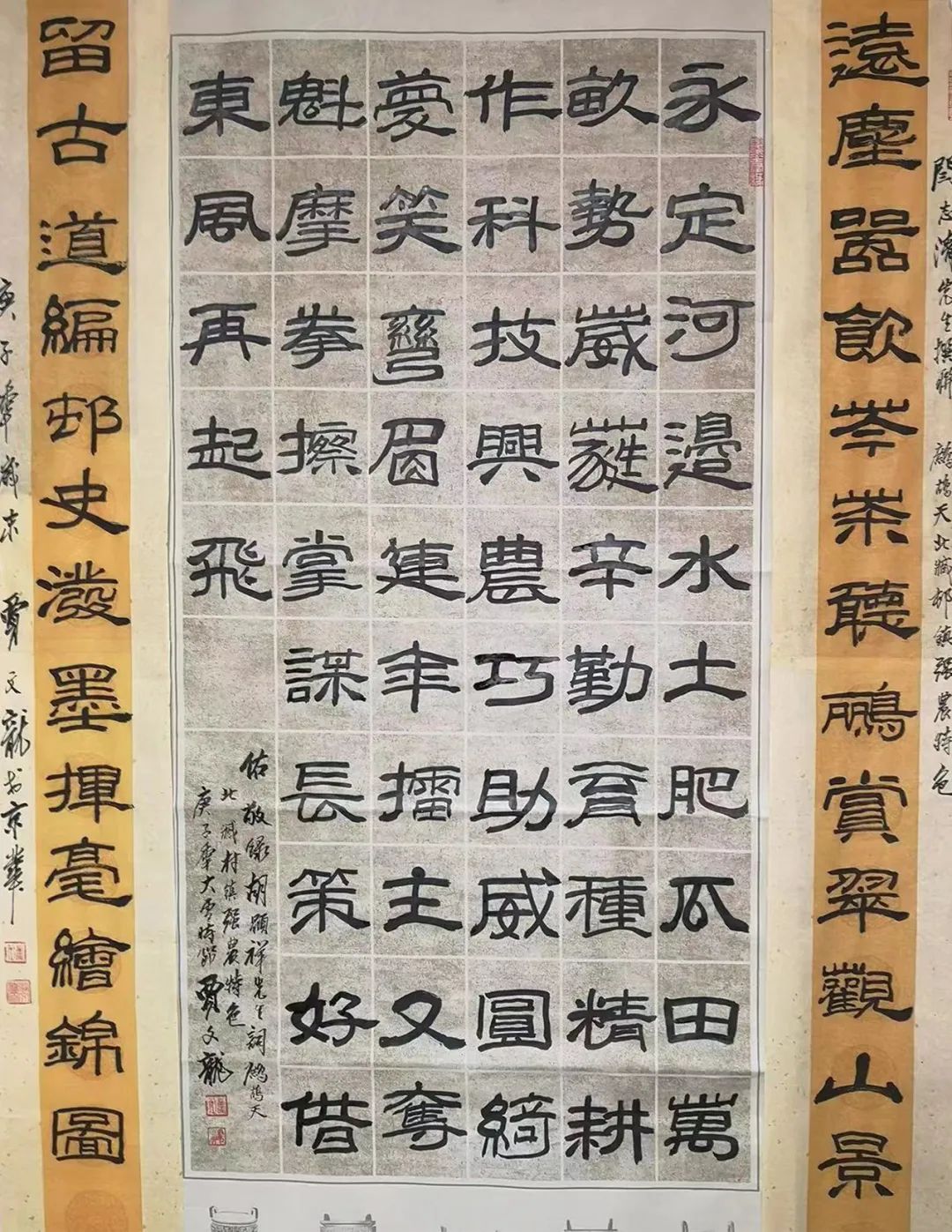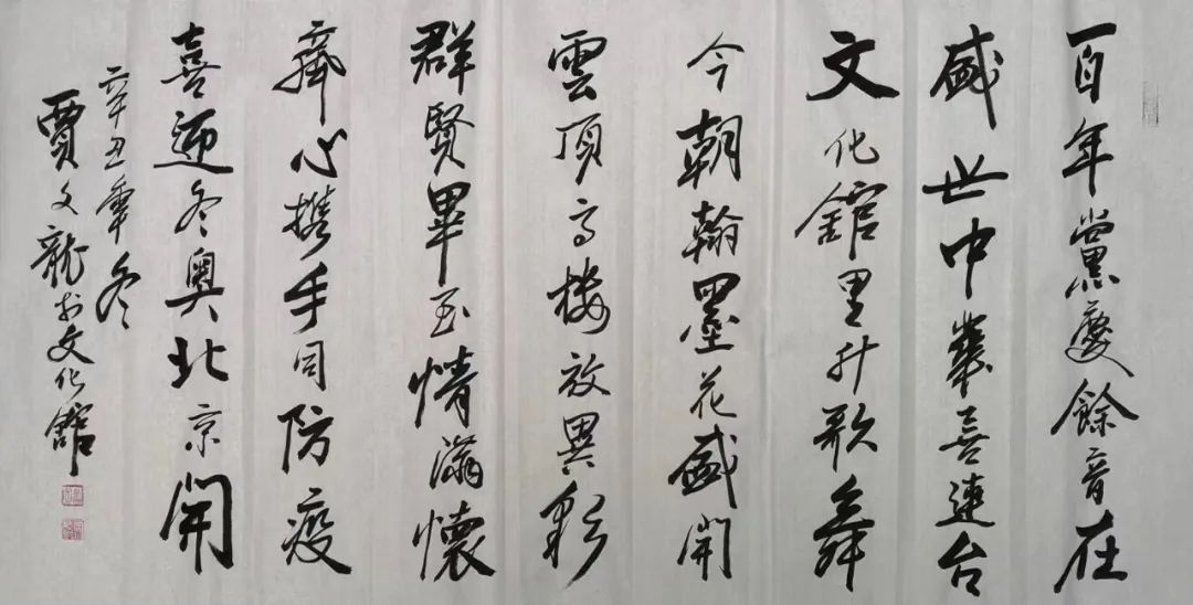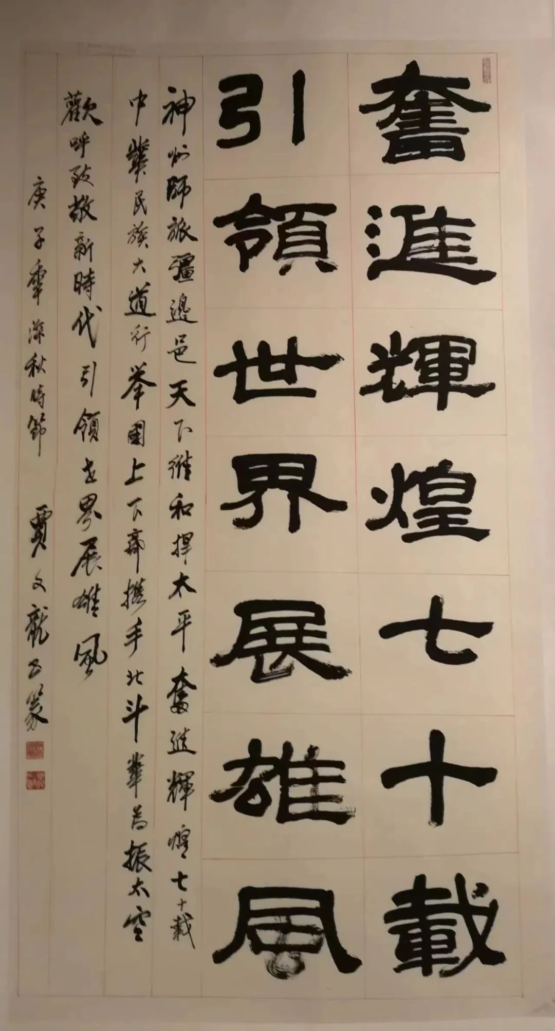 贾文龙,北京顺义人。1987年5月毕业首于首师大全国首届脱产书法大专班,首届书法专业本科,首届书法硕士研究生班北京市顺义区政协常委、中国书法家协会会员、北京市书法家协会理事、顺义区书法家协会主席.中国书法家协会书法大赛监审委员,德艺双馨艺术家评委。高级研究馆员,贾文龙曾为全国人大常委会、国务院办公厅等八处纪念碑书丹。多次应邀在中南海,钓鱼台,人民大会堂为各国总统和友人题赠作品,中华人民共和国成立60周年在天安门展出并被天安门收藏。墨艺传五洲,应邀赴38个国家展出,荣获功勋艺术家奖章和奖状。应华人抵特二百周年组委会主席的邀请,赴该国讲学,举办展览,受到到了该国总统的破格接见。为祖国和本地区文化搭桥、经济唱戏做出应有的贡献。外交部《中国梦》一书中,用八种语言推出的四大名家一。向世界发行。其论文、书法作品在专业刊物和全国多种书体展中入展获奖二百余次,在国家賑灾和疫情严重时刻,多次率先捐款和捐赠多件书法作品,并率先组织本地区书法协会捐款,支援抗灾防疫为国家做出了应有的贡献。贾文龙多年率领区书法家协会多次组织域外交流学习,坚持扎根北京基层,坚持为百姓和社会服务,区书法家协会曾两次被北京市书法家协会评为书法活动先进单位,本人被北京市委评为先进文化工作者。