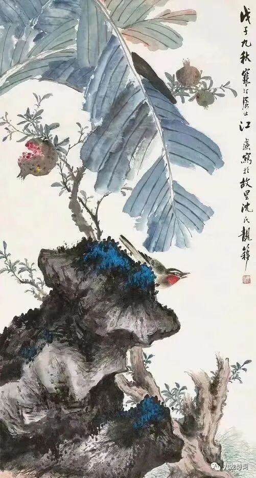 巴蕉叶大欲遮天,绛紫石榴绽笑颜。
