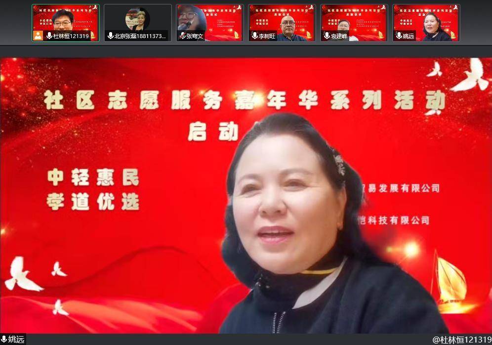 随后,张晓娟代表在线的活动各合作方宣布“中轻惠民·孝道优选”社区志愿服务嘉年华系列活动正式启动。