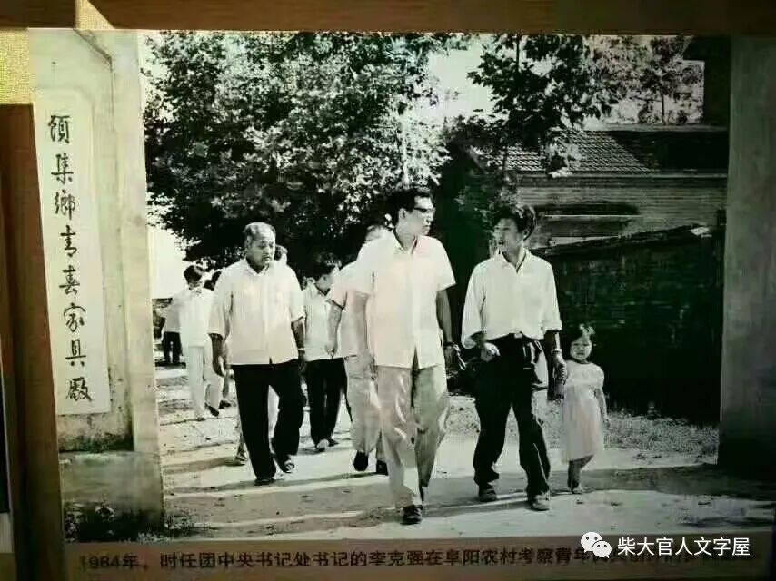 1984年8月15日下午3点左右,我(刘子刚,时任界首县委保卫科副科长)正在保卫科办公室值班,电话突然响了,是政府招待所服务员打来的,告诉我北京来首长了,叫我们去接待.我放下电话,立即赶往位于人民路的招待所。来到招待所内,看到几位同志,一位同志首先作了自我介绍,他是中国青年报驻安徽记者站记者张秋石,随后他介绍了共青团中央书记处候补书记李克强同志。我连忙上前与李克强同志握了手。和李克强同志一起来界首检查工作的共有8位同志,随后,我把他们安排到政府招待所后边的小所306房间,先让他们稍作休息,洗洗脸,喝点开水。安顿好后我立即去向县委书记进行了汇报。当时县委书记李廷荣同志正在召开常委会,我走到李书记身边,告诉他团中央李克强书记等8位同志来我县检查工作,我已经安排他们在政府招待所小所住下,并问李书记什么时间过去和他们见面,李书记告诉我散会后就过去,并安排我通知团县委两位同志先去汇报界首的工作情况。随后我就到团县委书记洪秀岭身边告诉他团中央李克强书记到界首了,现住在政府招待所,李廷荣书记让你们先去汇报界首的工作情况。洪书记让我去找吴志刚副书记先带一名同志过去汇报。