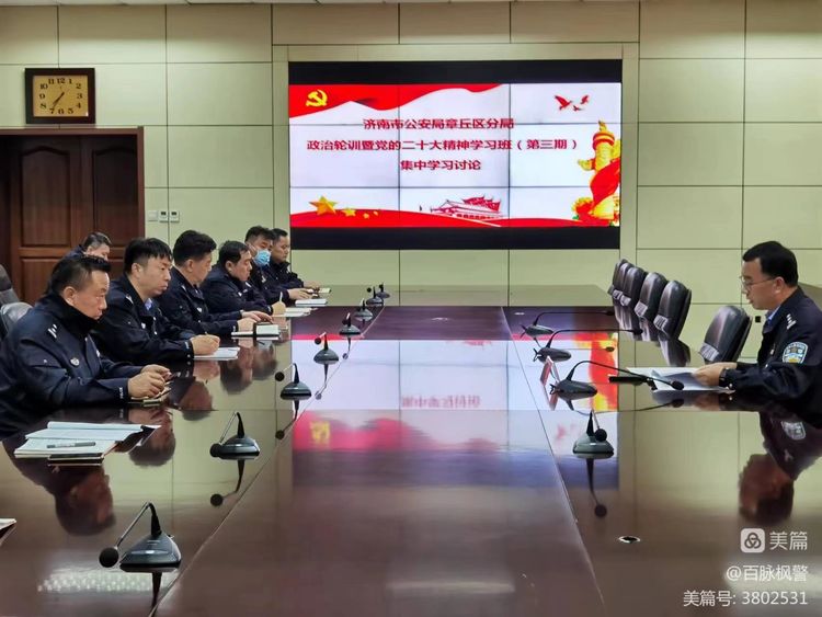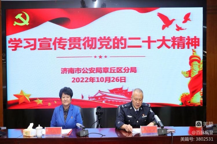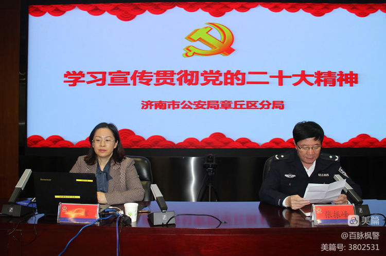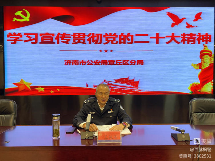 凝心聚力擘画新蓝图,团结奋进谱写新篇章。章丘分局将严格按照上级党委的统一部署,继续扎实开展有声势、有深度、有特色、有成效的宣传教育培训活动,切实把学习宣传贯彻党的二十大精神与中心工作深度融合,与推动当前重点工作紧密结合起来,继续严厉打击整治电信网络诈骗、医保养老诈骗等多发性侵财类案件及影响人民群众安全感的严重暴力犯罪,大力整治打架斗殴、赌博、醉驾酒驾等突出治安隐患,常态化推进扫黑除恶等专项工作,以严打高压态势推动社会治安秩序持续良好,切实增强人民群众获得感、幸福感、安全感;积极配合卫健等部门做好疫情防控,在隔离点用心用力日夜坚守,汇聚阻断疫情力量,筑牢防疫阻隔墙;持续拓展“我为群众办实事”实践活动成果,深化放管服改革,优化落实“365天×24小时”全天候服务等公安特色便民安商惠企举措,切实解决人民群众急难愁盼问题,真正把学习贯彻党的二十大精神转化成为群众办实事办好事的生动实践。全体民辅警强化责任担当,凝心聚力,积极行动,切实把党的二十大学习成果体现到工作行动中来,落实到为民服务中来,以更加饱满的工作热情,更加奋发有为的工作态度,全面做好防风险、保安全、护稳定、促发展各项工作,全力维护社会治安和谐稳定,真正让党的二十大精神在章丘公安落地生根、开花结果。