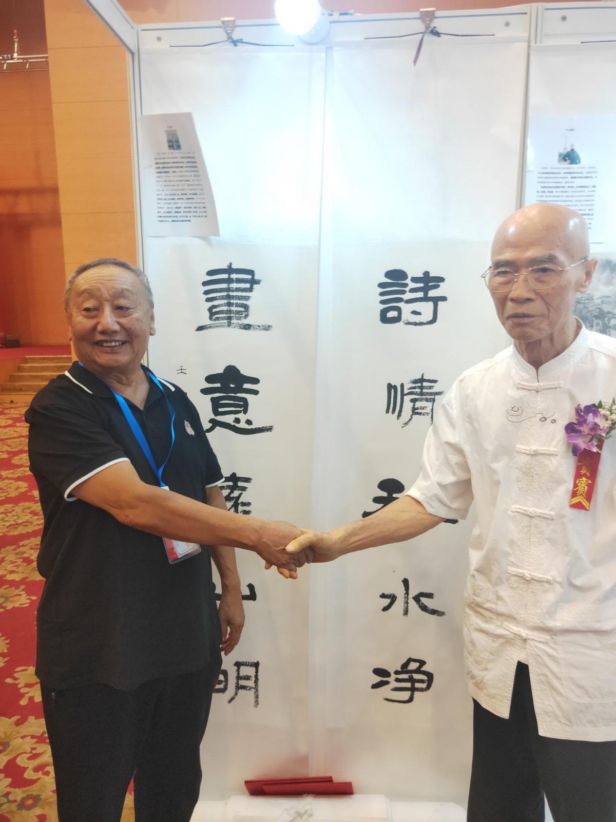 书法家石泽忠受到闫振堂会长(右)的亲切接见
