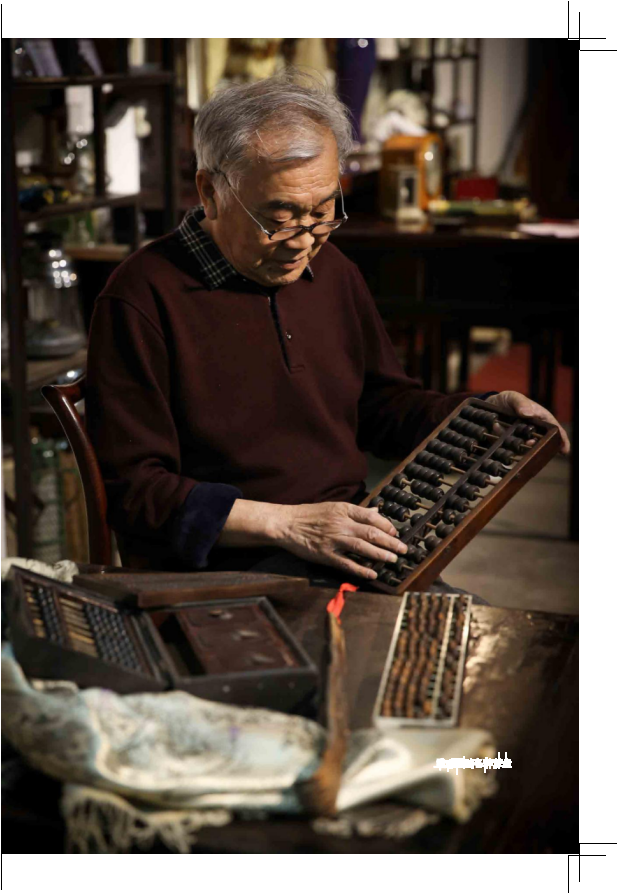 仿佛一夜之间,算盘就失去了用武之地,到现在,它竟成为濒临消亡的“ 老物件”。2008 年,珠算被列为国家级非物质文化遗产。2013 年12 月,中国珠算成功列入联合国教科文组织人类非物质文化遗产名录。申遗的成功,让算盘这个已然淡出生活实用层面几多载的老物件重返视野。这让不少人倍感纠结:在科技迅猛的今天,我们到底还需不需要算盘?与此同时,公众也开始考虑,我们该如何打好保护传统文化的算盘?人们努力地探寻着对算盘活化传承的现实路径。在教育产业中,“ 珠心算”风生水起。孩子走进了他们未曾领略过的算盘世界,不光见识了算盘的实在模样,还在心里“ 刻画”上一把算盘,用算盘心算加减乘除运算。虽然这对弘扬珠算传统文化来说,实属杯水车薪,但也着实精神可嘉。