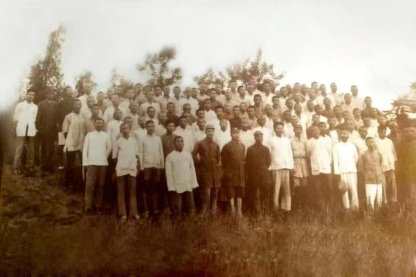 图为全体代表合影。会上莱芜县被评为抗日模范县,刘舜卿被誉为模范县长。