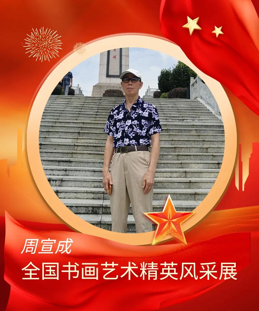 周宣成,湖南永州人,中共党员,中国传统文化促进会会员,中国美术家协会会员,中国功勋艺术家,参加过`中央文旅部管理干部学院培训学习,国家高级研修班学习,发表过中国山水画论文,出版了首批国家级非物质文化遗产中国艺术外交国礼珍藏版“金书”,四川美术人民出版社出版了个人专著,中国书画产业研究基地专家组成员,中企报盟信息科学研究院副院长,院士。中央美术学院客座教授,清华大学美术学院美术系客座教授,中国宣传部功勋人物艺术家,全国书画艺术委员会主席,文化部艺术发展中心副主席,中国楹联学会书画艺术院系系主任,中国书画家联谊会会员,北京心海集团,心海艺术研究院顾问,国家高级美术师,国家一级美术师,香港美协副主席,孔子美术館客座教授,国礼艺术家,国礼文化网特邀顾问,国宝级艺术大师,泰国朱拉隆功大学孔子学院荣誉博士。2019年,荣获首届新文人之冠美术家精品展“金奖”作品被新文人之冠美术馆收藏,并荣获“中国百强画家“荣誉证书” ,中华人民共和国艺术家走进泰国、马来西亚文化艺术交流展作品被泰国、马来西亚永久性收藏,荣获中奉友好交流大使荣誉证书,荣幸的被聘任中国艺术家。走进泰国文化艺术交流展荣誉艺术家,并获得金凰冠奖杯(最高奖)、大国外交书画名家金奖等。马来西亚文化艺交流展特邀艺术家。