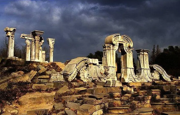 一炬繁华成废丘,残桥拱恨绿烟愁。