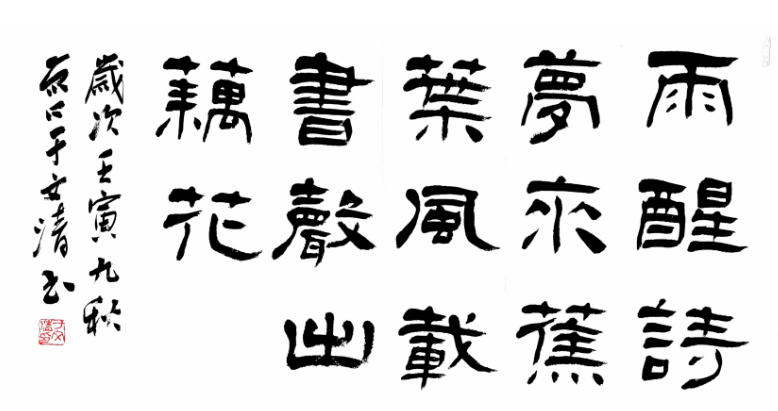 运笔浑如推土机,缶翁楹帖爱他肥。
