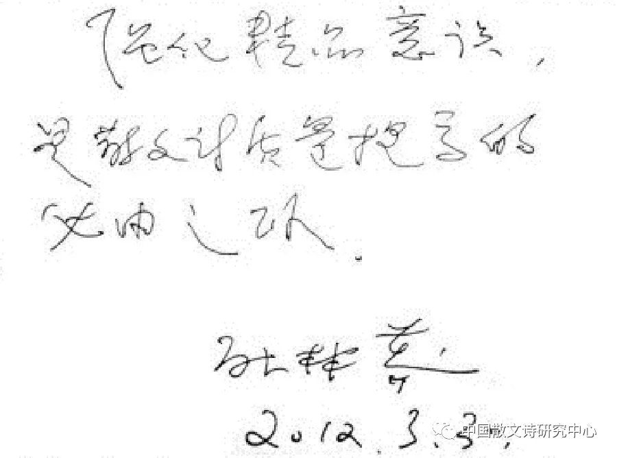 耿林莽:近年来,涌现出不少优秀的中青年散文诗人,这是中国散文诗走向繁荣的希望所在。身处人心浮躁、物欲横流的时代,散文诗人要守得住寂寞,抵得住诱惑,把注意力放在提高作品质量上。散文诗的命运,最终取决于总体创作质量的提升,这是我们肩负的共同责任。我愿与大家一起努力!