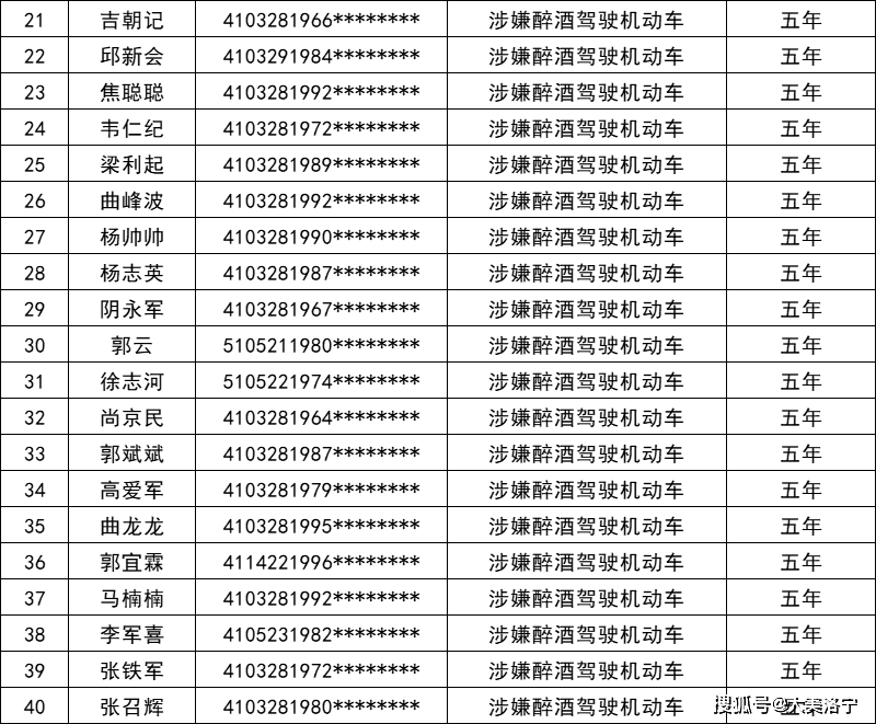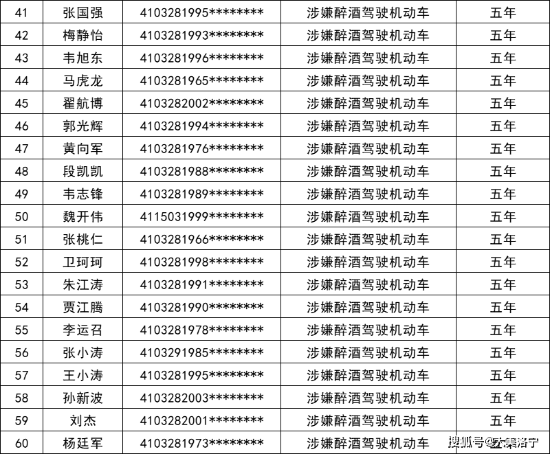 洛宁交警现将2022年被吊销驾驶证的人员进行曝光,警示严重交通违法的法律后果,彰显法律威严,震慑侥幸违法者不要再试图踩踏法律红线。同时,呼吁广大交通参与者安全行车、文明驾驶,共同抵制交通违法!