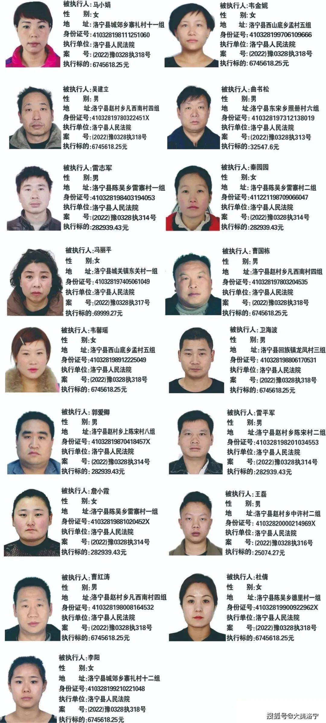 本期是洛宁法院失信被执行人曝光台。欢迎社会各界转发扩散,为构建诚信洛宁贡献自己的力量。