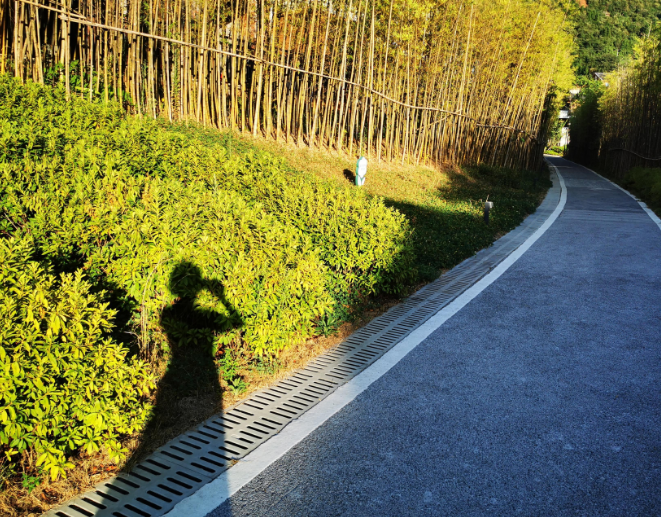 日日乡居,尤喜清晨。兴冲冲、来会芳邻。修篁浓密,幽静怡人,只一条路,一个我,一天云。