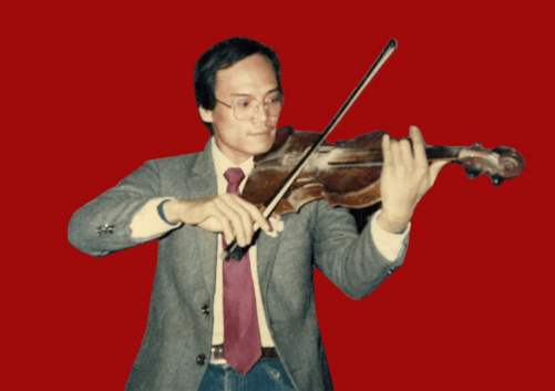 周建平在中山大学演奏小提琴《叙事曲》(1984年)