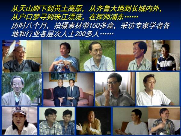 八千里路云和月。从天山脚下到黄土高坡,从齐鲁大地到长城内外,从壶口梦寻到珠江漂流,再挥师浦东……历时8个多月的艰苦拍摄和制作。拍摄的素材带200多盒,3000张照片。采访各级官员、外国市长,北京、上海、西安、广州著名学者,各地、各行业、各阶层人士达200余人。