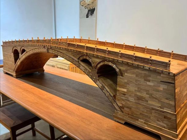 河北长城新媒体集团电子商务有限公司大力发展文化产业,着力输出符合文化创意、市场需求和线上线下流通的文创精品。2022年,公司联系木工匠人傅星卫精心打造了一座“榫卯结构的木制微缩赵州桥”,选用赵县当地的雪花梨木作为材质,结合实物按1:36的比例还原制作,历时四个多月终于完工!