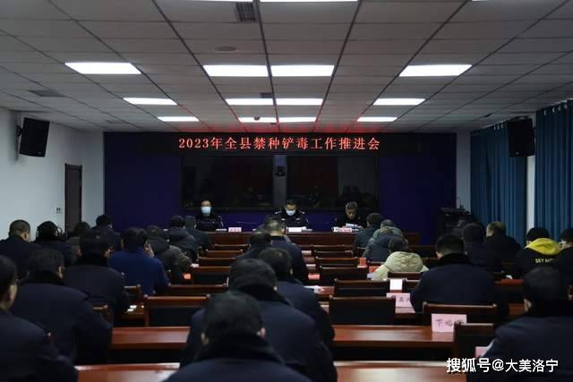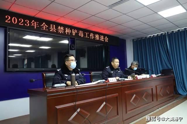 为全面贯彻落实国家、省、市禁种铲毒工作会议精神,持续推进禁种铲毒工作,2月16日上午,洛宁县召开了2023年禁种铲毒工作推进会,县禁毒委副主任、县人民政府副县长、公安局党委书记、局长刘海波,县政法委副书记赵旭阳出席会议,禁毒委相关成员单位政法委、法院、检察院、农业农村局、教体局、文广旅局、林业局、科工局分管领导、卫健委、各乡(镇)政府分管平安建设工作副职、各派出所所长、禁毒大队全体民警参加会议。会议由县公安局党委副书记、政委盛建立主持。