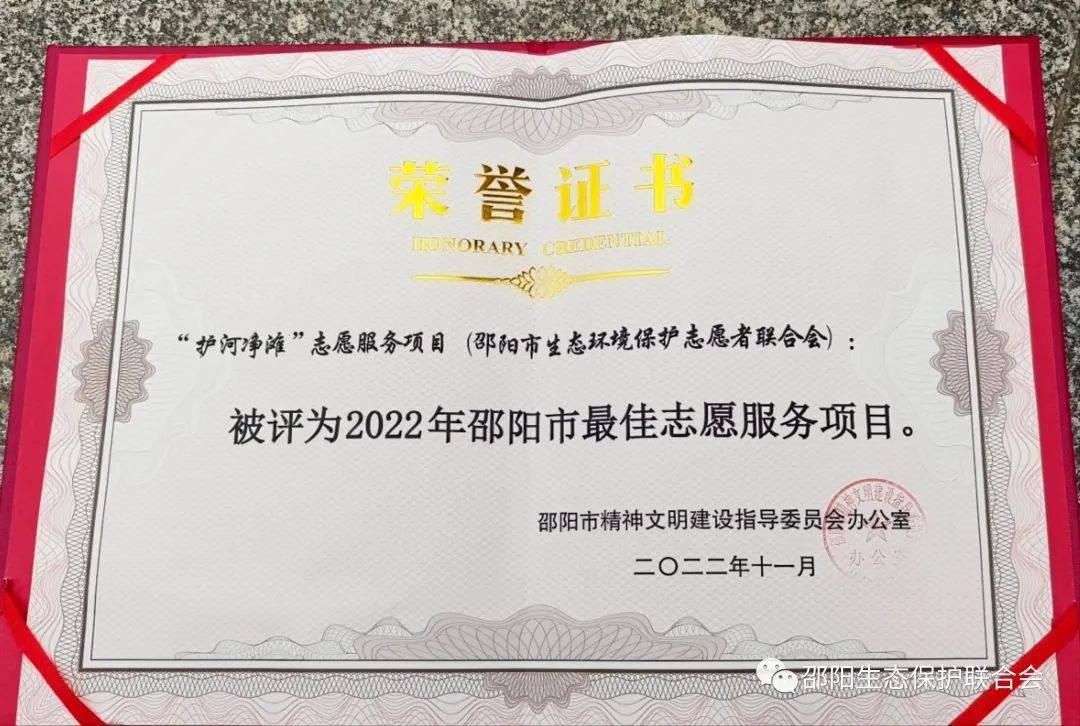 通过我和一大群志同道合的志愿者一道,我们联合会生态环境保护志愿服务常态化开展,取得令人瞩目的成就。2022年,我们联合会的护河净滩志愿服务项目荣获邵阳市最佳志愿服务项目,同时获得湖南省"十佳生态环境公众参与案例"奖。