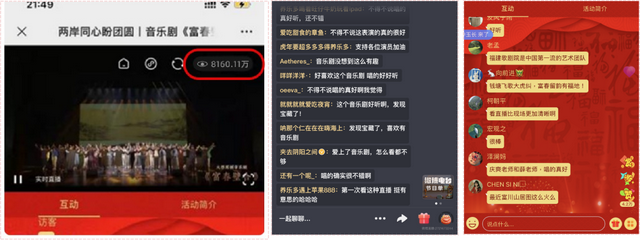 预演时便引发过亿关注,共盼“富春璧合”,多家线上直播平台,为无法走进剧场观演的人们奉上一场艺术盛宴。2022年7月音乐剧《富春璧合》成功首演。多家中央、省、市级媒体报道、转载,好评如潮。