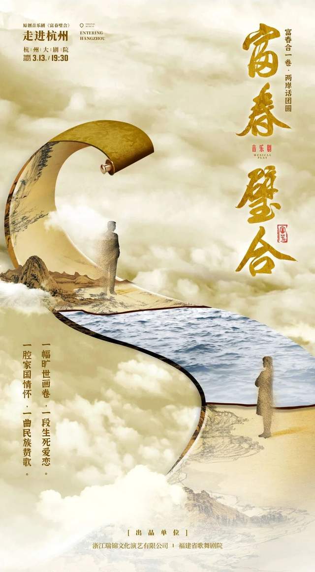 原创音乐剧《富春璧合》以家国情怀为底色,以千古名画《富春山居图》传奇经历为蓝本,由创作《七子之歌》的著名作曲家李海鹰作曲,由国内唯一一支由海峡两岸古典音乐家组建而成的职业交响乐团“福州海峡交响乐团”担任演奏。