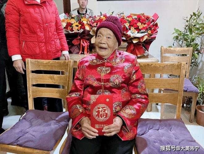 2月25日,洛宁县退役军人事务局为烈士张凤春之女张海棠送去鲜花、礼品庆祝老人百岁寿诞。