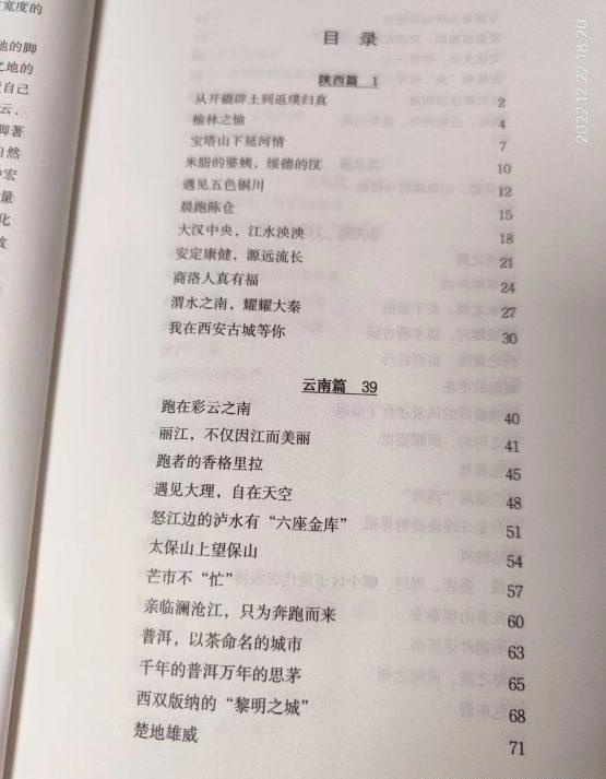 其中,写到汉中时,他说“在这双脚飞奔的土壤之下,尽是汉中三千年文化的汇总,随便用脚踢一下,都是厚重的中华文明。所以,我得小心翼翼地跑,别惊了汉中文化的‘龙脉’”。