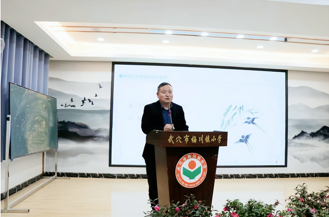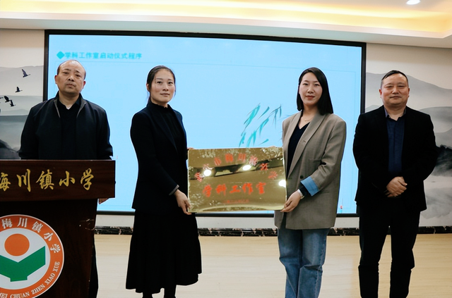 胡成义书记颁发工作室牌匾,标志着学科工作室正式成立。牌匾是荣誉,也是责任。胡书记表示,学科工作室的成立是拓宽教师成长路径的新举措,期待教师们携手向前,匠心筑梦,为梅川镇小学的发展添光添彩。