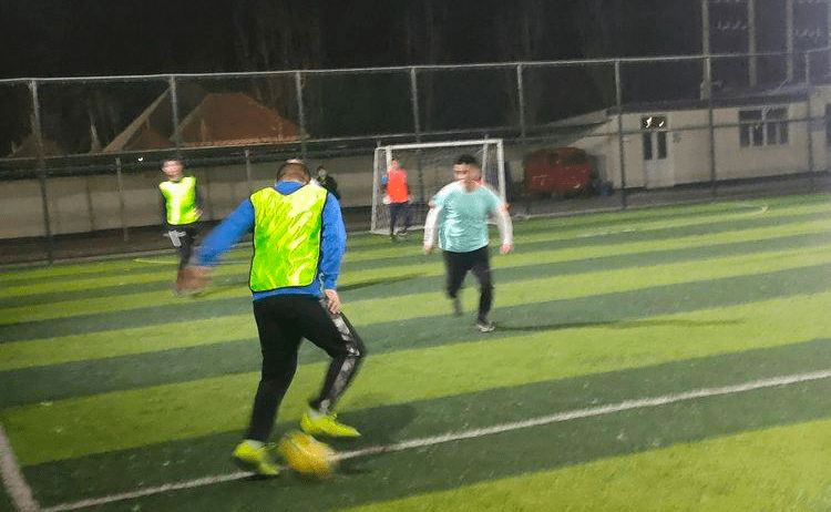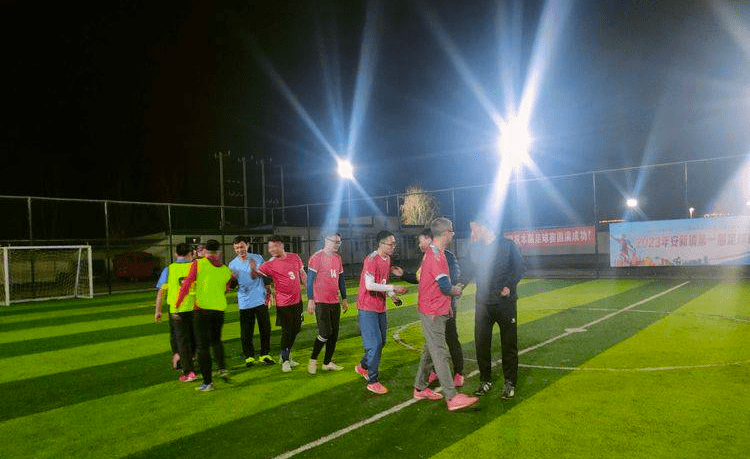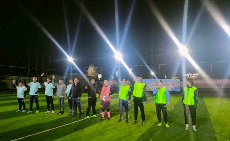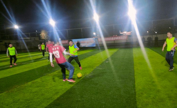 华灯初上,球员们在赛场上做着热身运动,随着裁判一声哨向,安新镇第一届足球联赛,正式拉开了序幕。今天安排的是两场比赛,首先由小张庄队对阵中国电建队,第二场由安新镇机关队对阵北联街队。