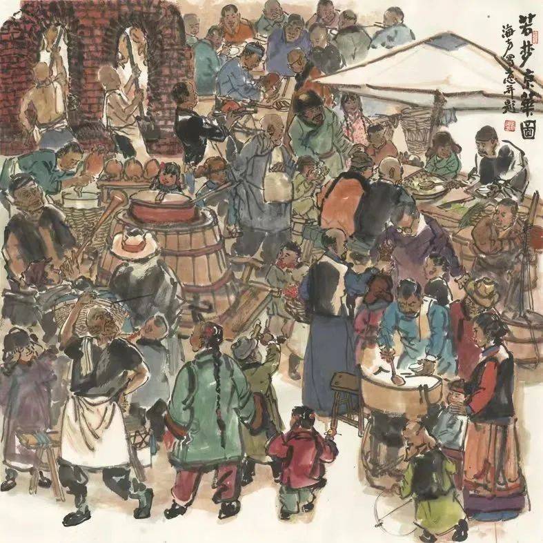 对于北京中轴线申遗景观的系列创作问题,马海方先生曾自嘲道:“我以前总画人物,这突然画这么多建筑,还都是众所周知的老北京的代表景点,画起来确实显得有些手生。”身为科班出身的绘画名家,马海方先生的这番表态当然是自谦之语,另一方面也说明他对新作所表现的内容有敬畏之心和谦恭之态。他还说:“我画这些北京中轴线申遗人文古迹,这些个遗产是老北京最值得说道的地方。很多年前我就想把这块艺术表现所空缺的地方给补上,但想法太多了,总感觉还欠缺什么,所以我一直在寻找与等待,一直在调研和印证,直到近年才找到感觉及状态,才觉得现在的创作心态和素材储备基本趋于成熟了。但画了一部分才又意识到,其实再充分的准备都不如动手去画来得有效和直观,只有在不断的创作中才能将作品打磨成熟或画成自己想要的样子。所以在画的过程中对于有些不满意的作品我就多画上几遍,最后,从中精心挑选一组最满意的北京中轴线申遗人文景观系列画作献给国内外所有关心北京中轴线申遗活动的朋友们,希望大家能喜欢,也想给时代和历史留下点我自认为满意的艺术作品。”