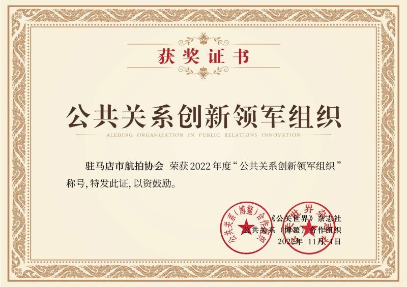 据了解,驻马店市航拍协会是全国首家地市级航拍协会,是驻马店市文联直属、具有独立法人资格的一级社团,自2018年成立以来,先后多次荣获“国际摄影文化交流贡献奖”、全国“公共关系创新领军组织”等称号,协会“飞手”多次在全国和国际航拍(摄影)大赛中斩获大奖。