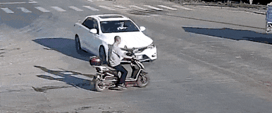 左侧未戴头盔重伤、右侧戴头盔安全。