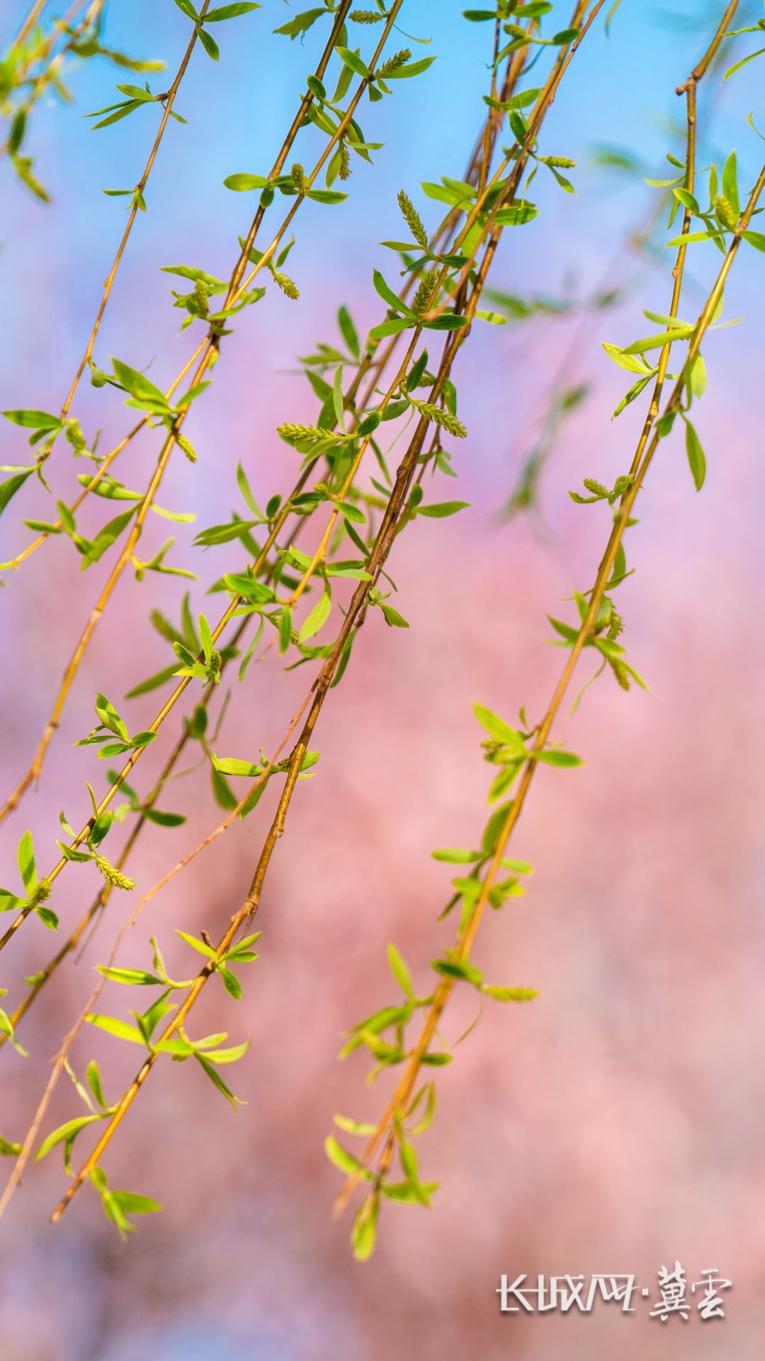 城市水系旁,柳树细细的柳条上发出了新芽。长城网·冀云客户端记者 康义涵 摄