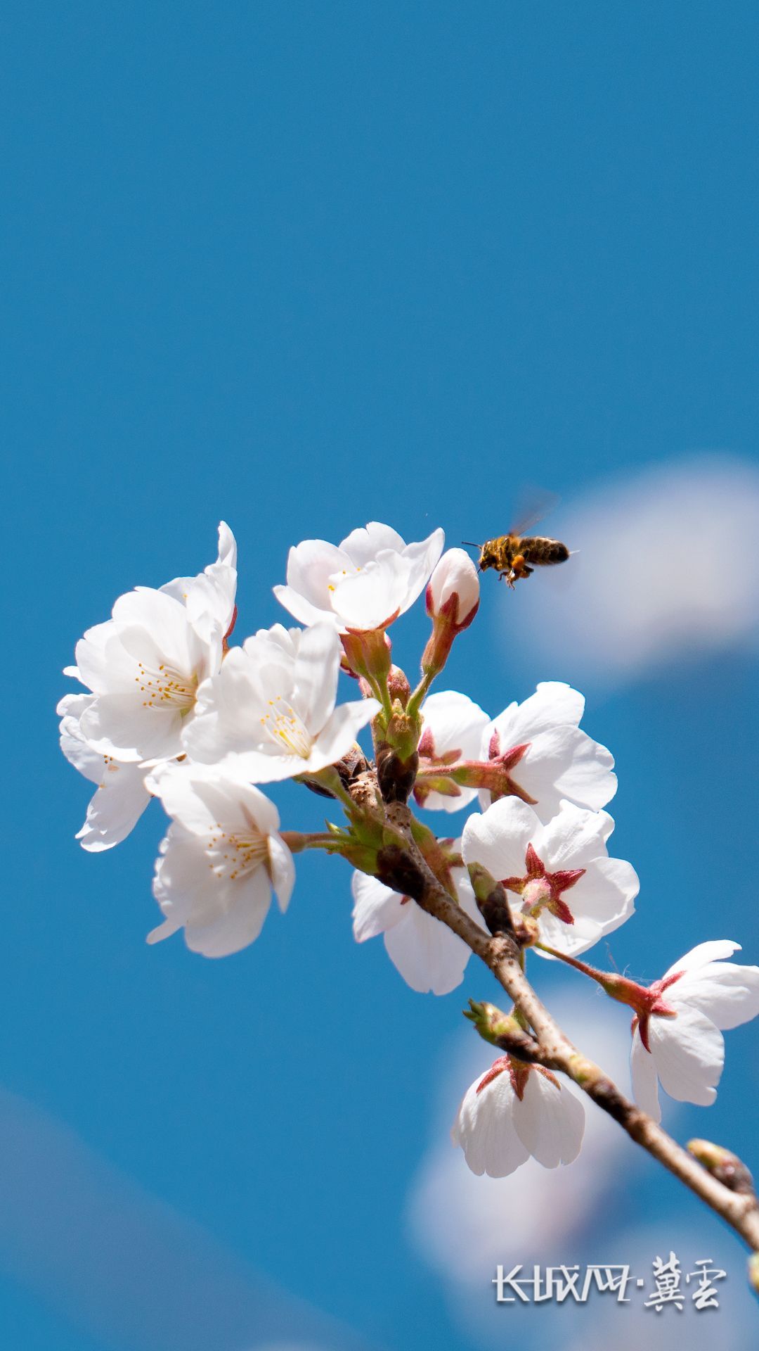 蜜蜂穿梭于花海中,忙着采蜜。长城网·冀云客户端记者 康义涵 摄
