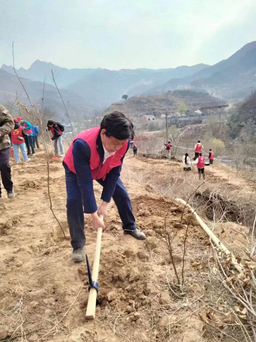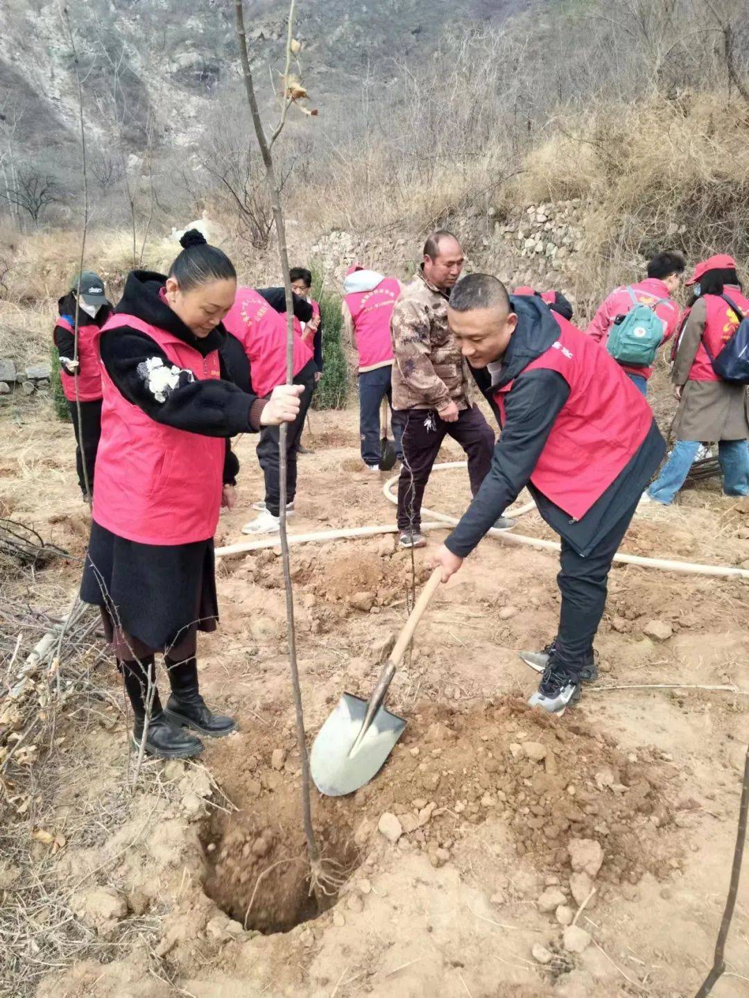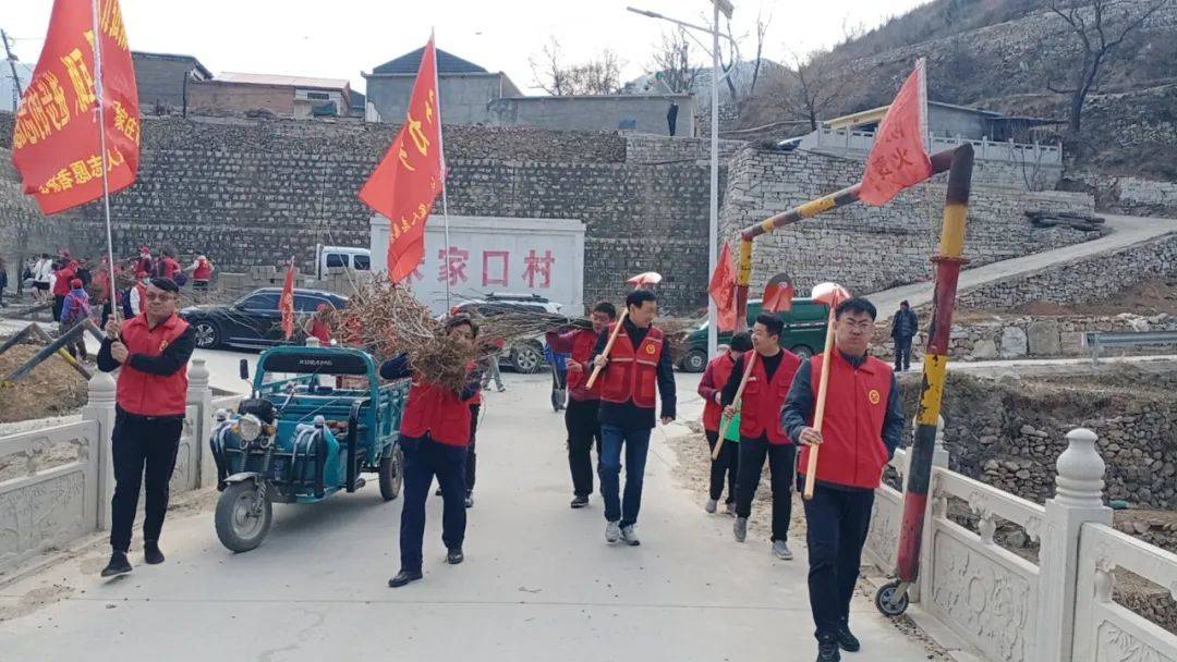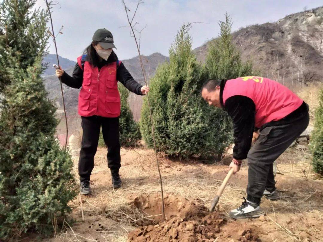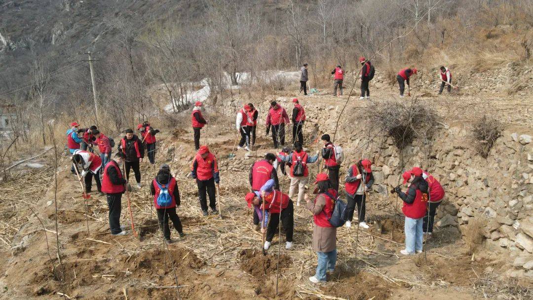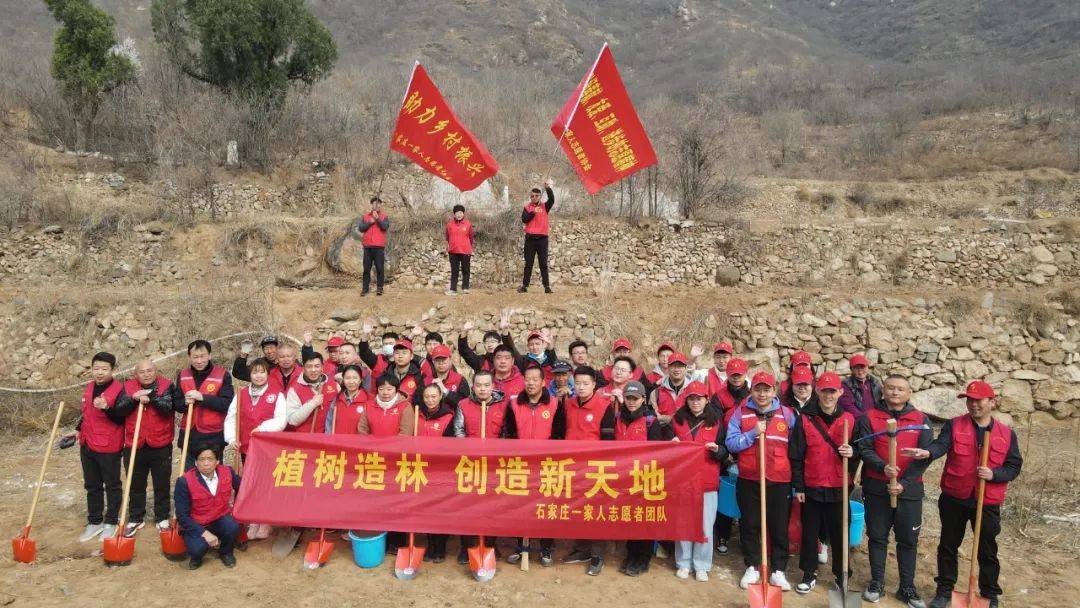 3月17日,石家庄市委宣传部四级调研员赵军安、石家庄市委宣传部(市文明办)文明创建协调科科长王莹、石家庄市志愿服务基金会理事长赵梅茹,中国电建集团河北工程有限公司,裕华区文明办,裕华区宣传部,裕华区志愿者联合会,石家庄一家人志愿者团队,鹿泉区一家人志愿者分队总共40多人从石家庄出发,到革命老区平山县宋家口、占路崖等村参加植树活动。