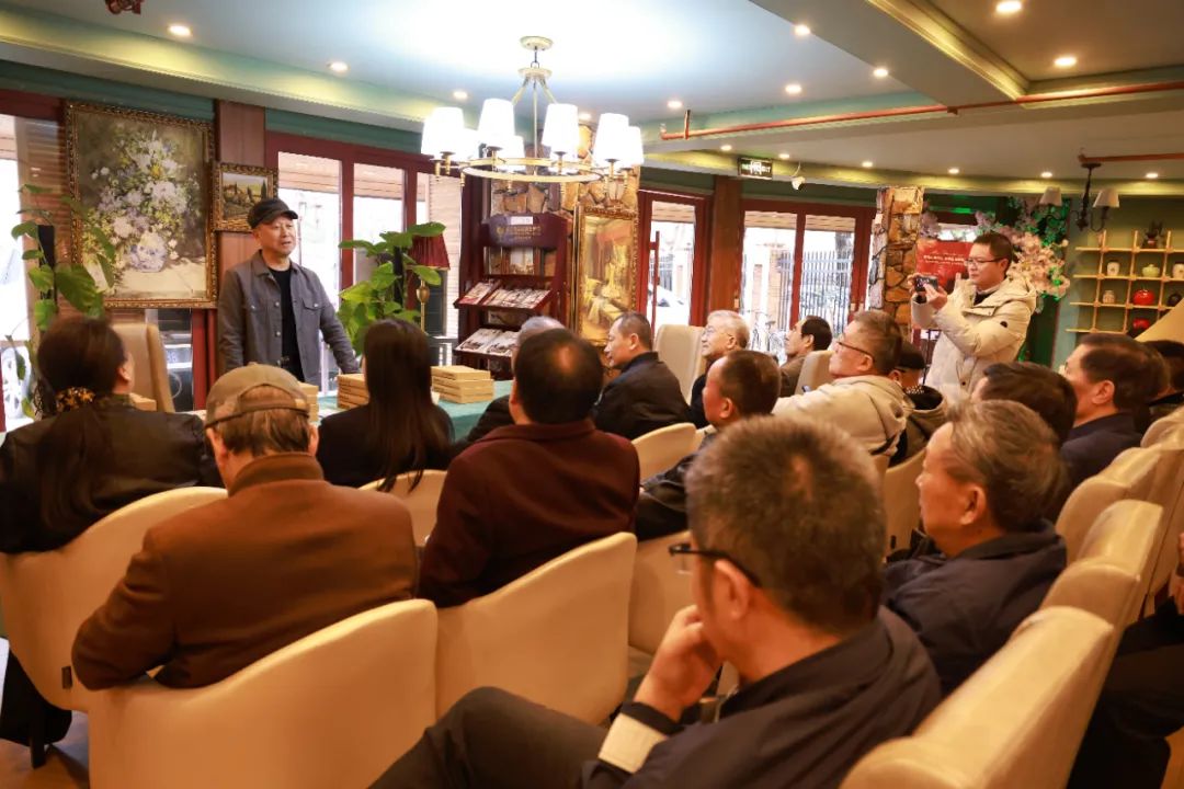 特邀嘉宾武汉经开区书画协会主席吴万昊,德贤堂书画社秘书长马鹏涛,德贤堂书画社成员及东风公司在汉书画爱好者共23人出席会议,德贤堂书画社副社长薛苏华主持会议。