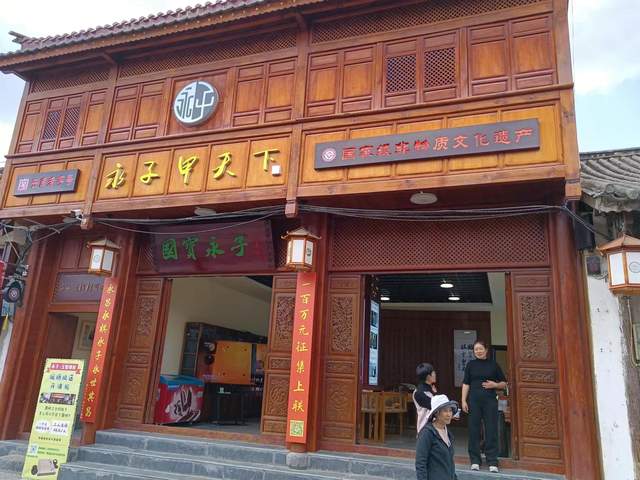 从万文凤的“板桥百年老茶馆”望过去,不远处是国家级非物质文化遗产、云南老字号的“永子甲天下”店铺,这里是立誓将永子打造成为世界围棋“天元”的李国伟的店铺——店里播放着段林希的《永子赋》,歌声悠扬,柜台上摆设着形形色色的永子和一些介绍永子的典籍。