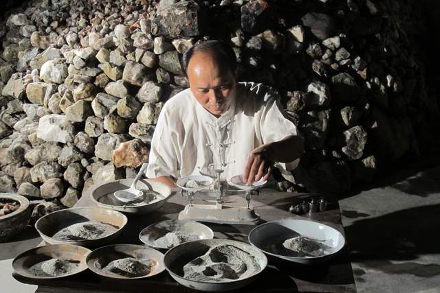 永子棋厂的烧制车间,近2000度的炉火火焰翻腾,将保山当地的南红玛瑙、黄龙玉、翡翠和琥珀等珍贵原料融化成液体。
