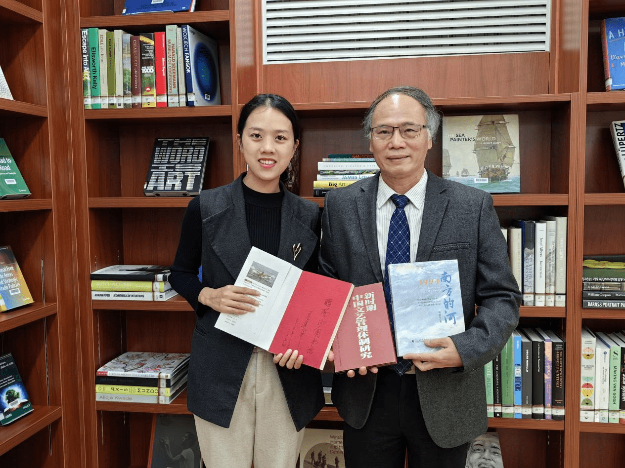 周建平向南沙图书馆赠送《新时期中国文艺管理体制研究》、《1994 南方的河》等专著