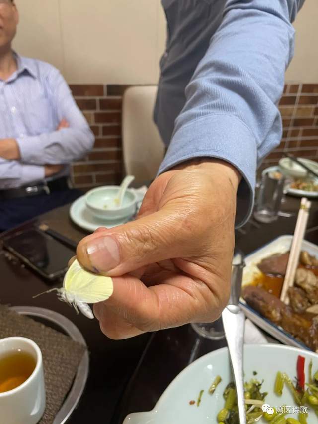 ——在深圳画家诗人周苏秋将赴苏州举办个人美展邀请的观画聚会上,一只蝴蝶翩翩飞来。