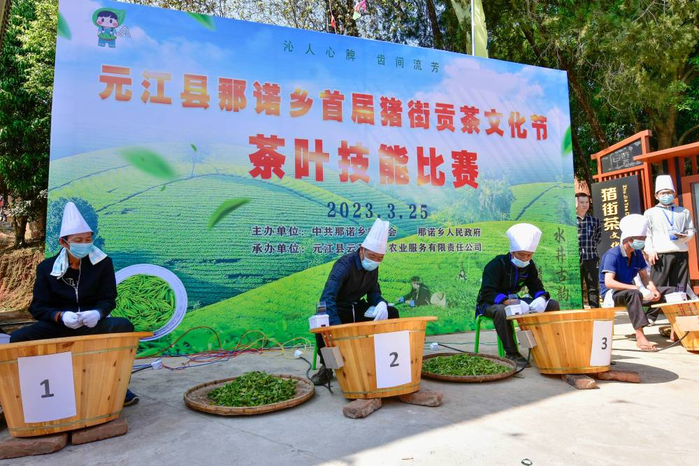春分已过,万物勃发,玉溪市元江哈尼族彝族傣族自治县那诺乡猪街村的上千亩茶树抽芽吐绿、茶香四溢,首届猪街贡茶文化节在这里举办。