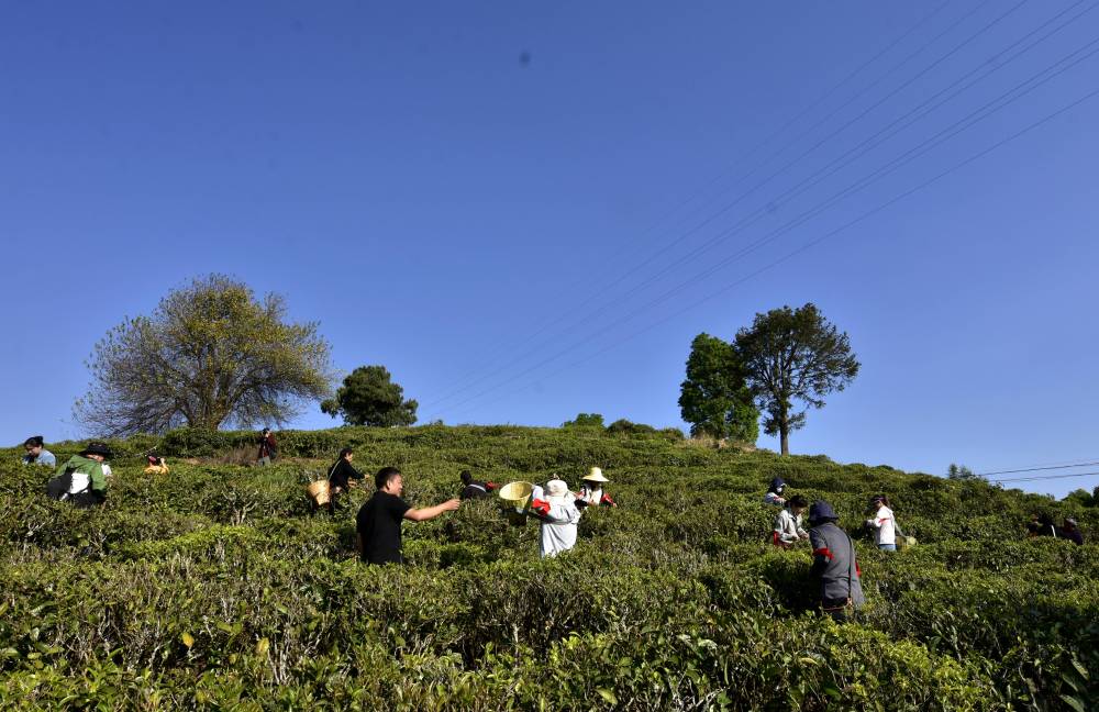 一场仪式感满满的开采祈福仪式拉开了活动的序幕,随着一声号令,一场速度与技艺并重的采茶比赛开始,参赛选手腰系竹篓,手指不停地在一片片茶叶上飞舞,一捏一提间,一片片鲜叶入篓,评委根据选手采茶数量、质量进行综合打分,决出最后名次。