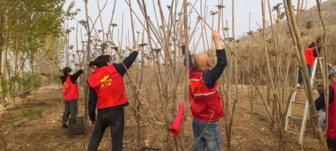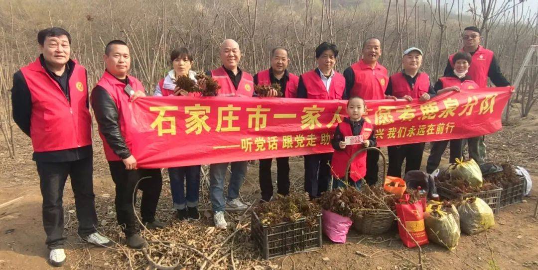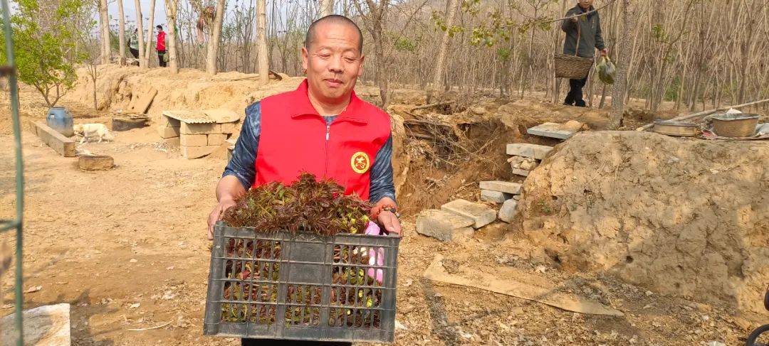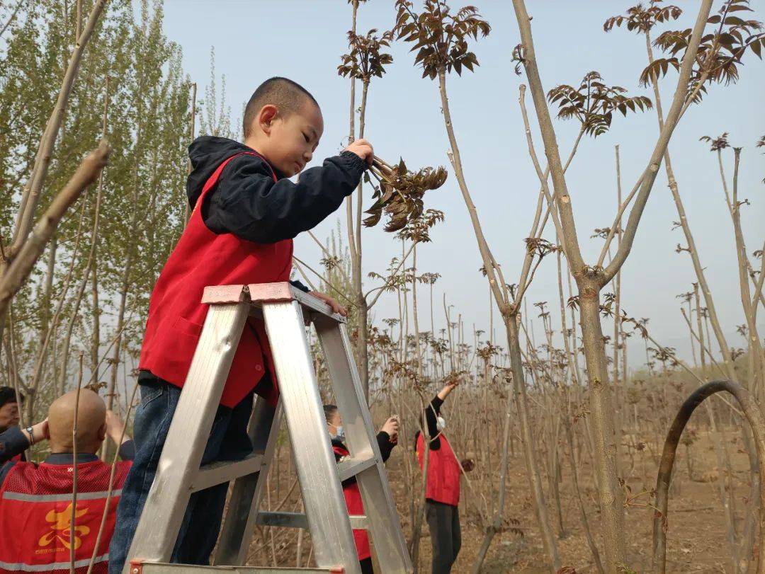4月1日早上7点,团队负责人温德军带领志愿者韩国友、马玉峰、温棋羽等在桥西区大经街鼎嘉府邸集合7点半出发,与鹿泉区一家人分队牛振河、曹会芬、牛新娟、张哲、郑文昭、张志平、李海成等一起来到了采摘地,此时,新鲜的香椿芽正散发出阵阵香气。