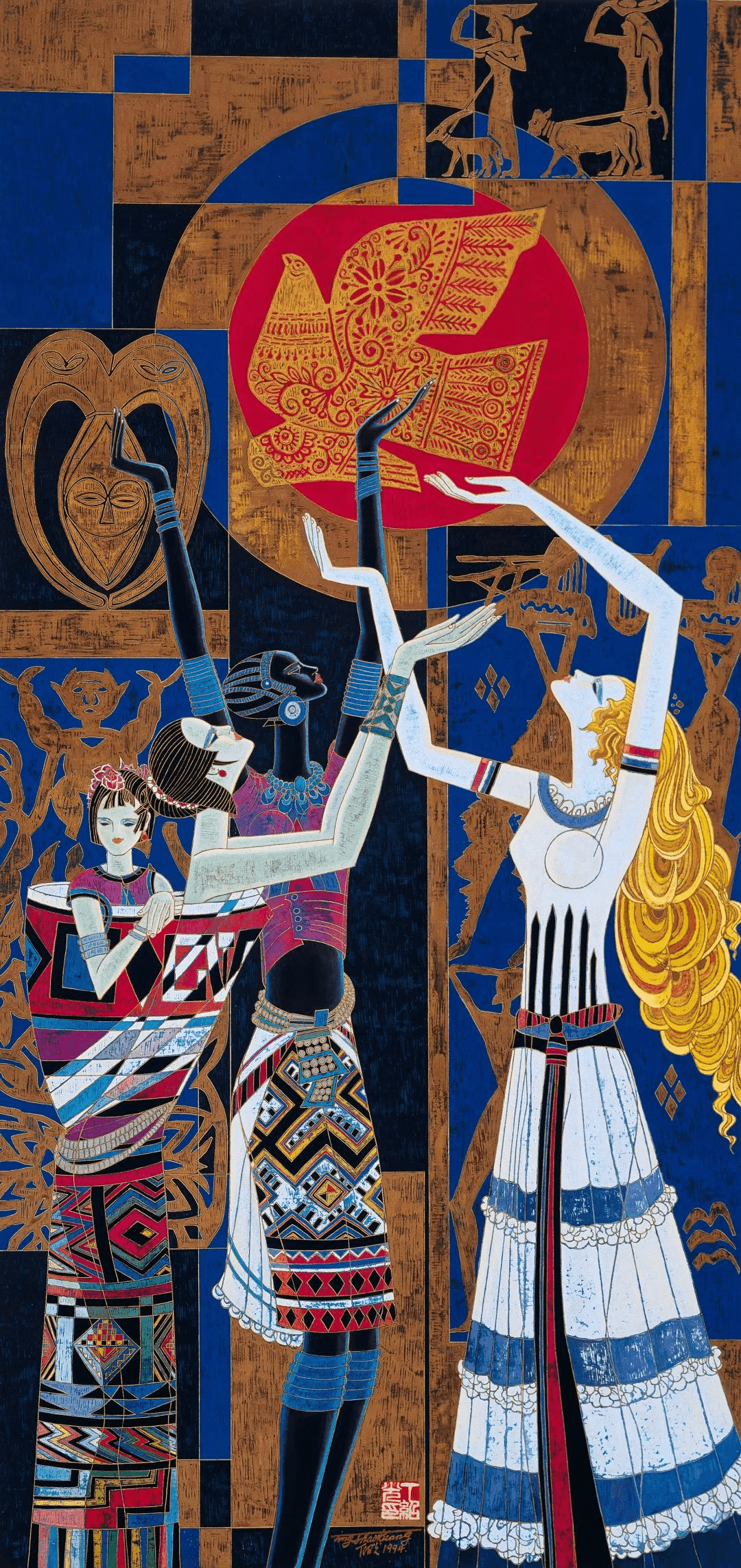 1994年,联合国向全球发行丁绍光作品《母性》限量版画,纪念国际家庭年。