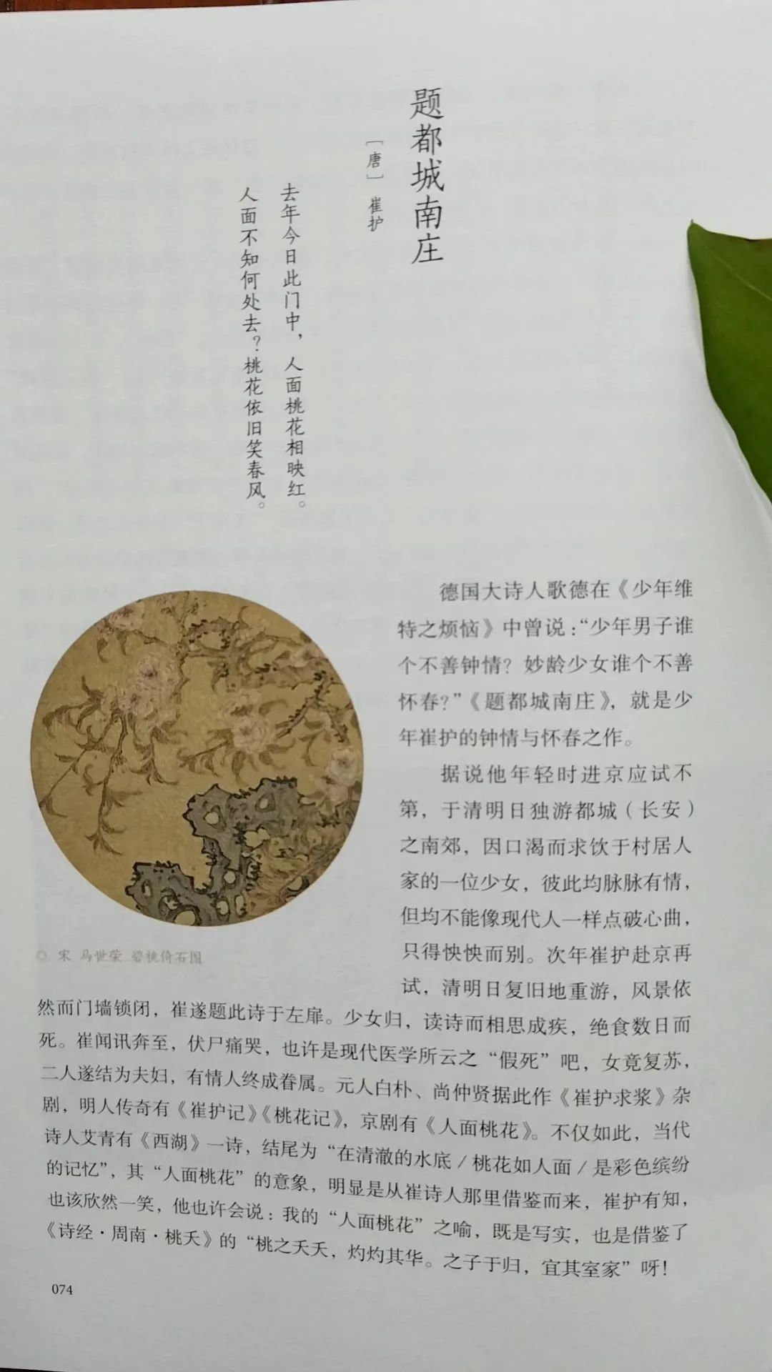 德国大诗人歌德在《少年维特之烦恼》中曾说:“少年男子谁个不善钟情?妙龄少女谁个不善怀春?”《题都城南庄》,就是少年崔护的钟情与怀春之作。