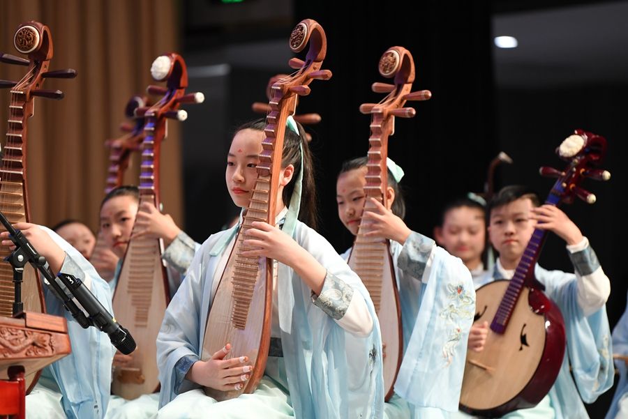 4月26日,贵阳市南明区中小学生第二届艺术节器乐比赛活动现场。(赵松摄)为营造蓬勃向上的校园文化氛围,丰富校园文化内涵,全面提升中小学生的艺术素养,助力“双减”工作的落实,4月26日,由贵阳市南明区教育局主办,南明区少年宫承办的“童心跟党走·一起向未来”南明区中小学生第二届艺术节器乐比赛活动在南明区华附初级中学举行。在为期两天的比赛中,来自该区中、小学校的百余名选手将进行民乐、西洋乐两个类别的角逐。(赵松)