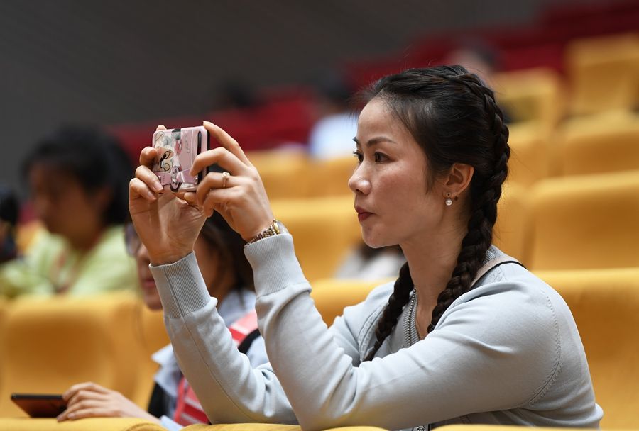 4月26日,在贵阳市南明区中小学生第二届艺术节器乐比赛活动现场,观众专注观看比赛。(赵松摄)