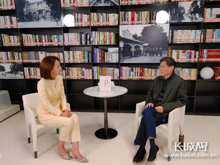 《品读西柏坡》作者孙万勇(右)讲述作品背后的创作故事。记者 李梦颖 摄