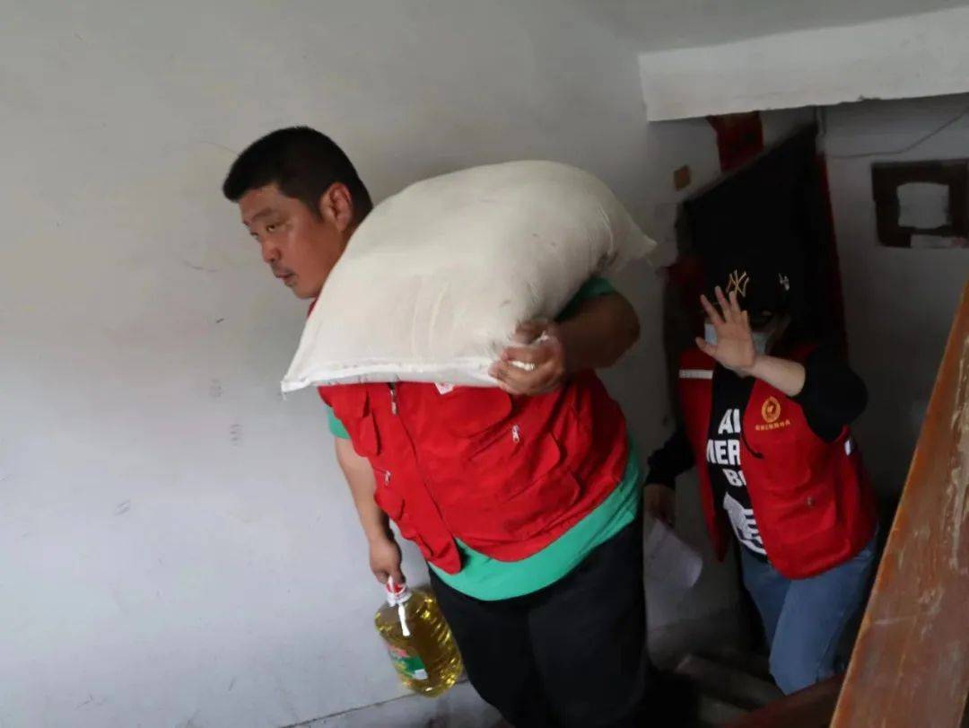 与此同时,石家庄一家人最美志愿者刘意与裕华区新时代文明实践志愿服务总队、裕华区文明办、裕华区志愿者联合会也一起开展了慰问活动。刘意购买了两袋面粉和两桶食用油,在青三社区工作人员的带领下,来到了青三社区,慰问空巢老人赵翠珍、残障人士岳建国。
