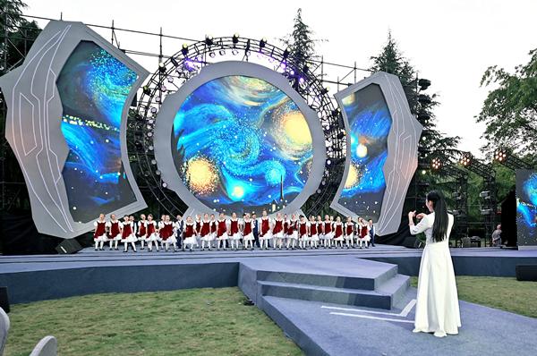 A children's choir performs at the opening of the 14th Chinese Nebula Awards gala in Guanghan, Sichuan province, May 13, 2023. [Photo courtesy of EV/SFM]