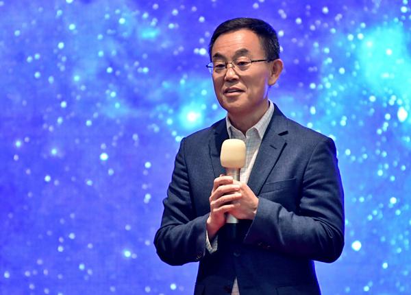 Jack Gao delivers a keynote speech on artificial intelligence during a summit forum before the 14th Chinese Nebula Awards gala in Guanghan, Sichuan province, May 13, 2023. [Photo courtesy of EV/SFM]